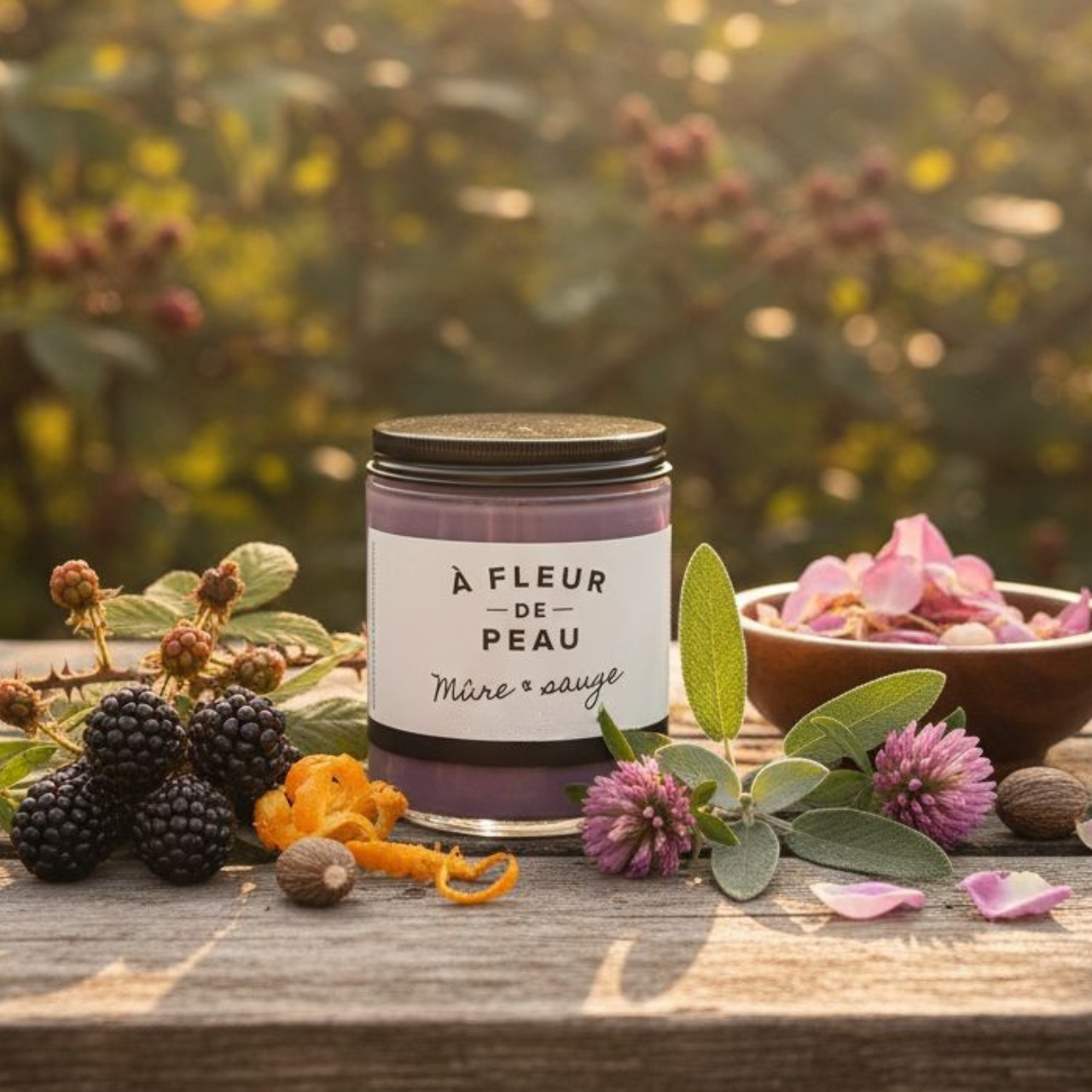 Une alliance gourmande et herbacée : mûres acidulées, touches d’épices, pétales de rose et feuilles de sauge pour un parfum fruité, frais et sophistiqué.